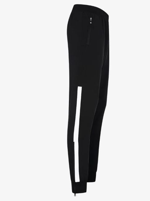 Mustat verkkahousut sopii niin vapaa-aikaan kuin urheiluun. Lahkeissa vetoketjut.