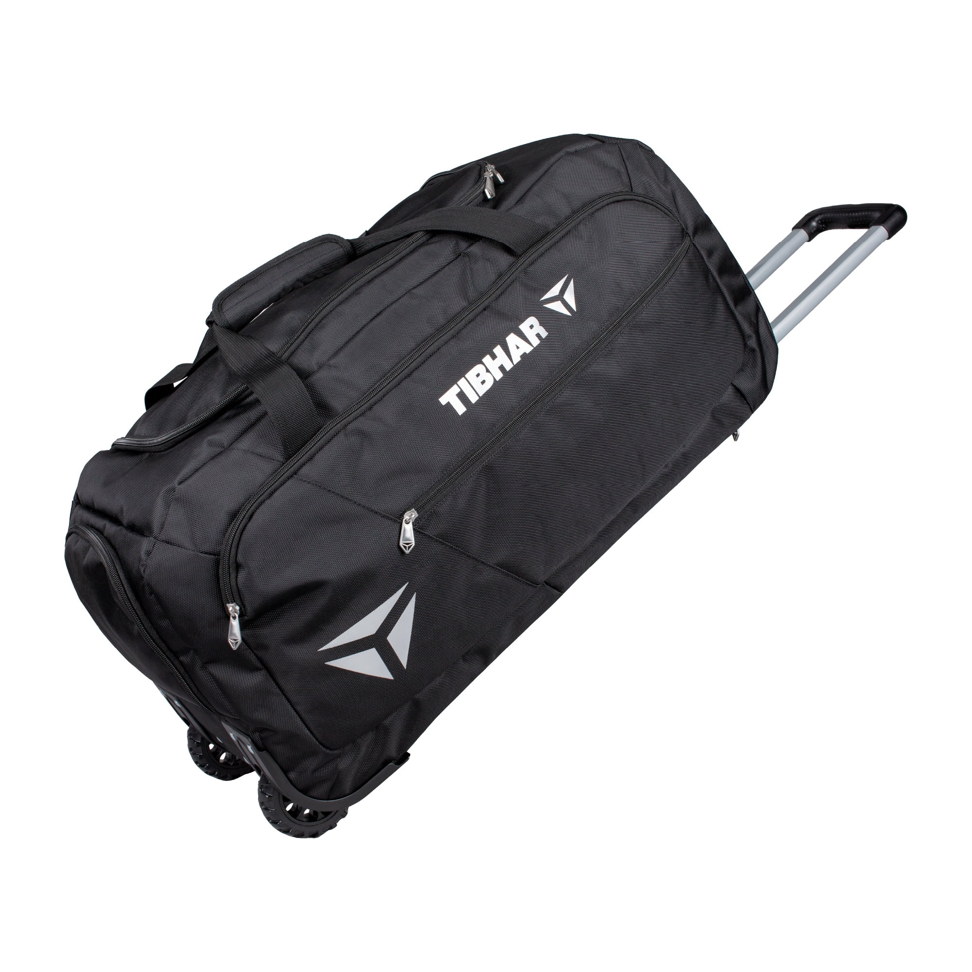 Tilava vedettävä laukku teleskooppikahvalla. Useita taskuja tavaroille ja tilava päälokerikko.